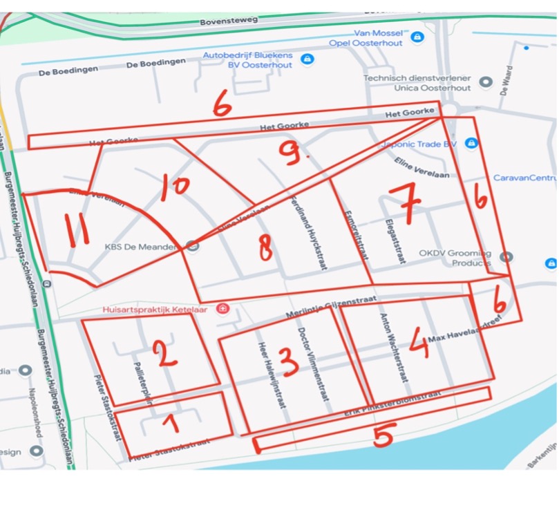 Onze wijk is verdeeld in 12 delen (Markkant / Vrachelshofje en Vrachelsedijk is deel 12). Per segment zijn er 1 à 2 straatvertegenwoordigers nodig afhankelijk van de grootte. Om een goed beeld te krijgen van de leefbaarheid van de wijk is het van belang dat elk voorval, denk aan inbraak, brand of overlast, door de bewoners zelf bij de desbetreffende instanties wordt gemeld. Maar ook verkeersoverlast of gevaarlijke situaties kunnen gemeld worden via info@vrachelen2.nl of aan de straatvertegenwoordiger. We hebben 6 vergaderingen per jaar met het team Buurtpreventie en diverse partners zoals bijvoorbeeld de gemeente en politie. Straatvertegenwoordigers mogen (niet moeten) daar altijd bij aanwezig zijn en kunnen anders ook informatie over hun wijkdelen per mail doorgeven. Het kost je ongeveer 15 minuten gemiddeld per maand om de belangrijkste ogen en oren van de wijk te zijn! Het werk wat je erin steekt als straatvertegenwoordiger is dus zo groot of klein als wat je zelf kan en wil. Met alle beetjes zijn we al enorm blij. Als uitbreiding van het takenpakket kun je ook denken aan: het verwelkomen van nieuwe bewoners, meedenken en opzetten van projecten (activiteiten, straatspeeldag, of aansluiting in een van onze commissies),mee helpen met de verspreiding van de nieuwsbrieven en (actief) deelnemen met de whatsapp groep als beheerder of deelnemer.
